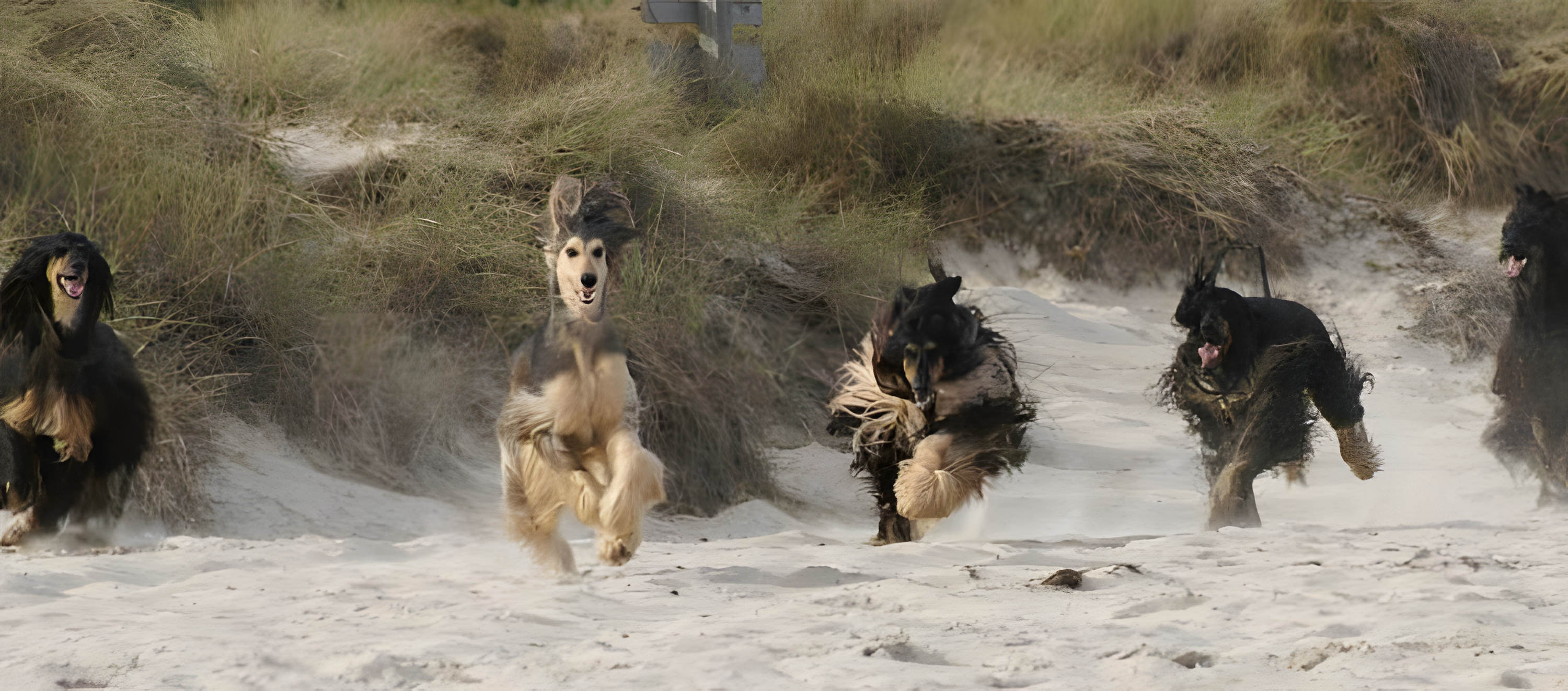 BREVI CENNI STORICI: I primi afghani arrivarono in Gran Bretagna nei primi anni del 1900 ed uno, chiamato Zardin, vinse in modo spettacolare all’esposizione Crystal Palace di Londra nel 1907. La razza è anche conosciuta con il nome Tazi, somigliando così, con tale nome, ad una razza Russa. Uno dei più tipici levrieri al mondo, l'Afghano - che, come suggerisce il suo nome, proviene dalle montagne dell'Afghanistan - è un cacciatore e caccerà se gli viene data l'opportunità. Oggi è anche un affascinante cane da esposizione che deve combinare forza e dignità con un mantello lungo e setoso oltre a manifestare un portamento orientale.